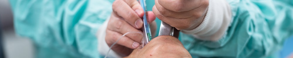 Often used as a last resort surgical airway management is often used when other techniques are unsuitable, i.e. the airway is blocked by a foreign object which can’t be dislodged or facial trauma and in some cases when a patient needs mechanical ventilation for a long period of time. There are two types of surgery a cricothyrotomy is an emergency surgical procedure in which either a needle or preferably an incision is made through the cricothyroid membrane and a small ET tube is inserted or a tracheotomy is where a specialist surgeon makes incision lower in the neck and a bespoke airway catheter is inserted directly into the trachea.